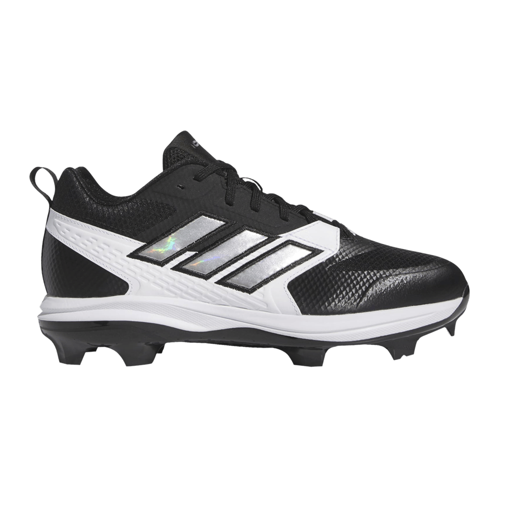 Engineered for the rigors of baseball, the Icon 8 TPU 'Black Silver Metallic' is crafted to deliver peak performance on the field. Its cleated outsole is designed for superior grip and stability during quick movements and dynamic plays. This shoe is a testament to Adidas's commitment to providing athletes with equipment that elevates their game.