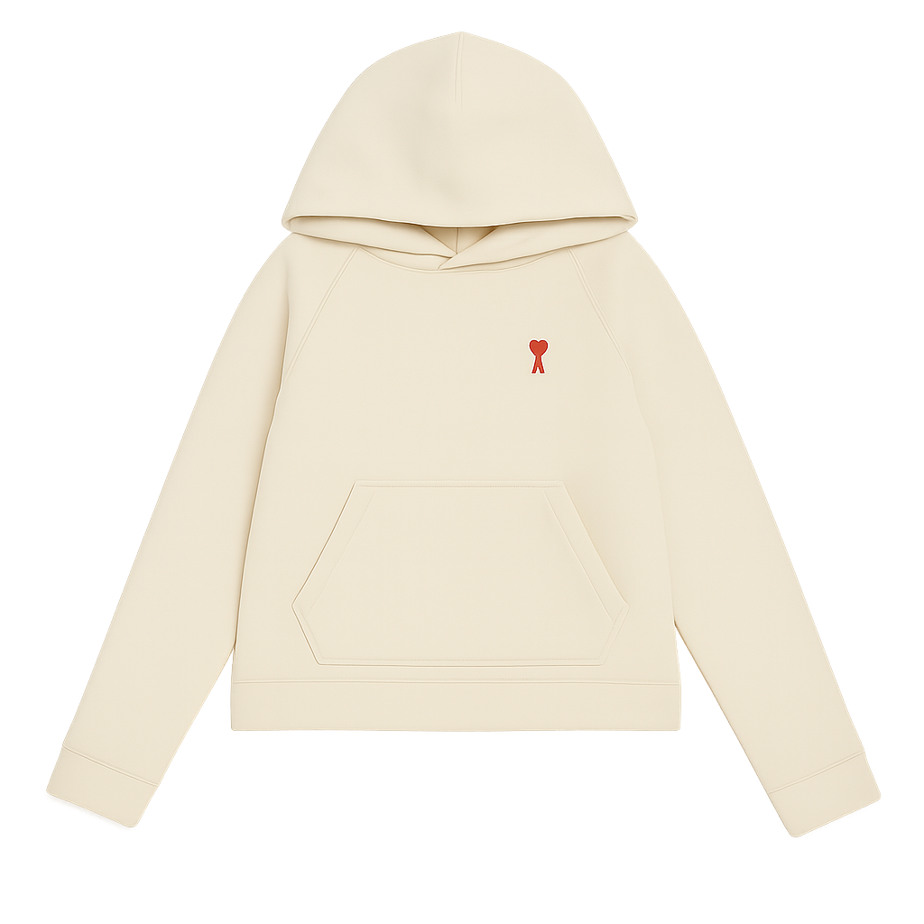 Ami Paris Ami De Coeur Embroidered Logo Hoodie Off White/Red