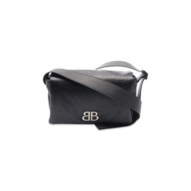 Balenciaga Monaco Flap Messenger Bag Black – front view