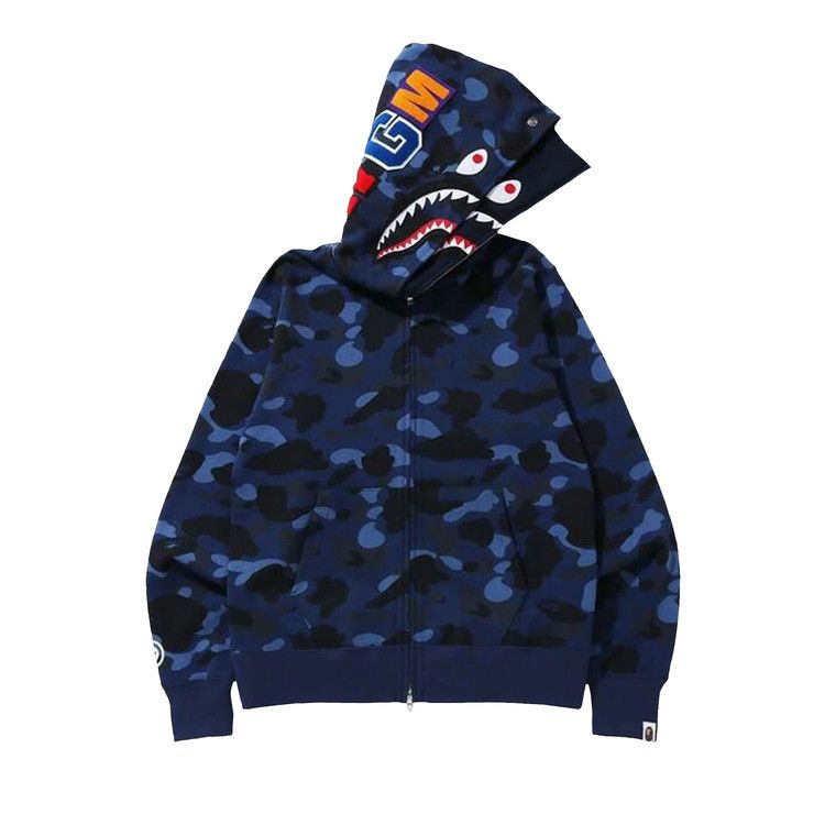 Bape Color Camo Shark Wide Full Zip Double Hoodie Navy