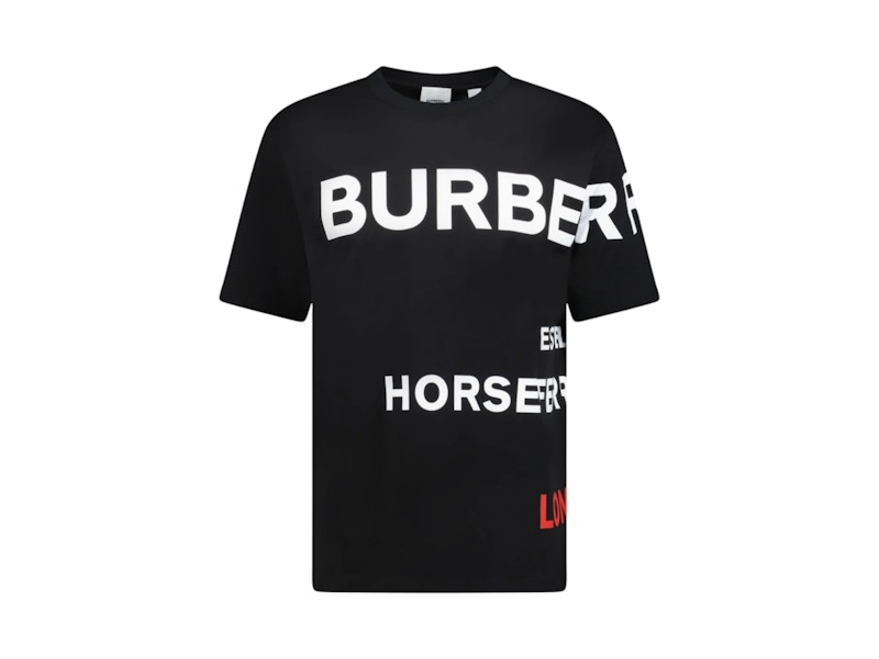 This garment originates from the esteemed house of Burberry, a name synonymous with British heritage and luxury. The black T-shirt, a staple of modern wardrobes, represents a deliberate fusion of classic design with contemporary sensibilities. The color choice, black, is an intentional statement of understated elegance, a canvas for the iconic Horseferry print.