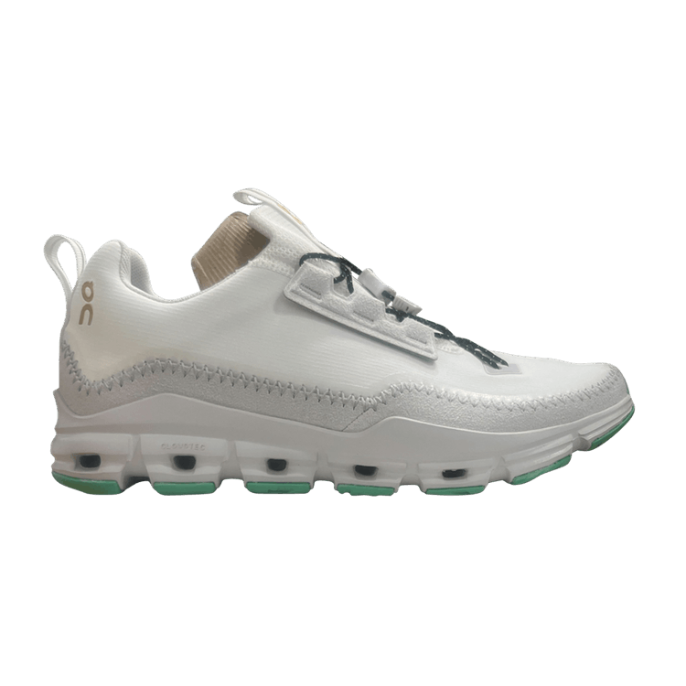 Designed as an everyday travel essential and urban explorer, the Cloudaway CN 'Undyed Parakeet' is versatile. It is suitable for casual outings, adventure-ready training, and light hiking. Its robust build, featuring a 3D tread pattern inspired by Switzerland's Engadin Valley, ensures reliable traction. The webbing lacing system with rope laces and toggle drawcord adds to its practicality.