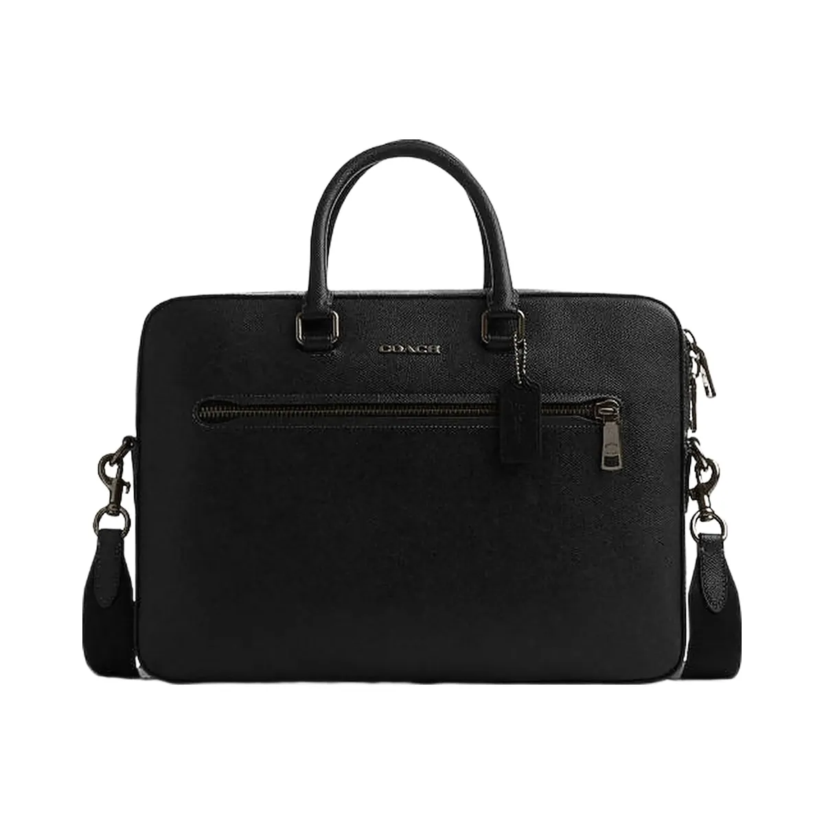 Coach Ethan Slim Brief Crossgrain Leather-Gunmetal-Black