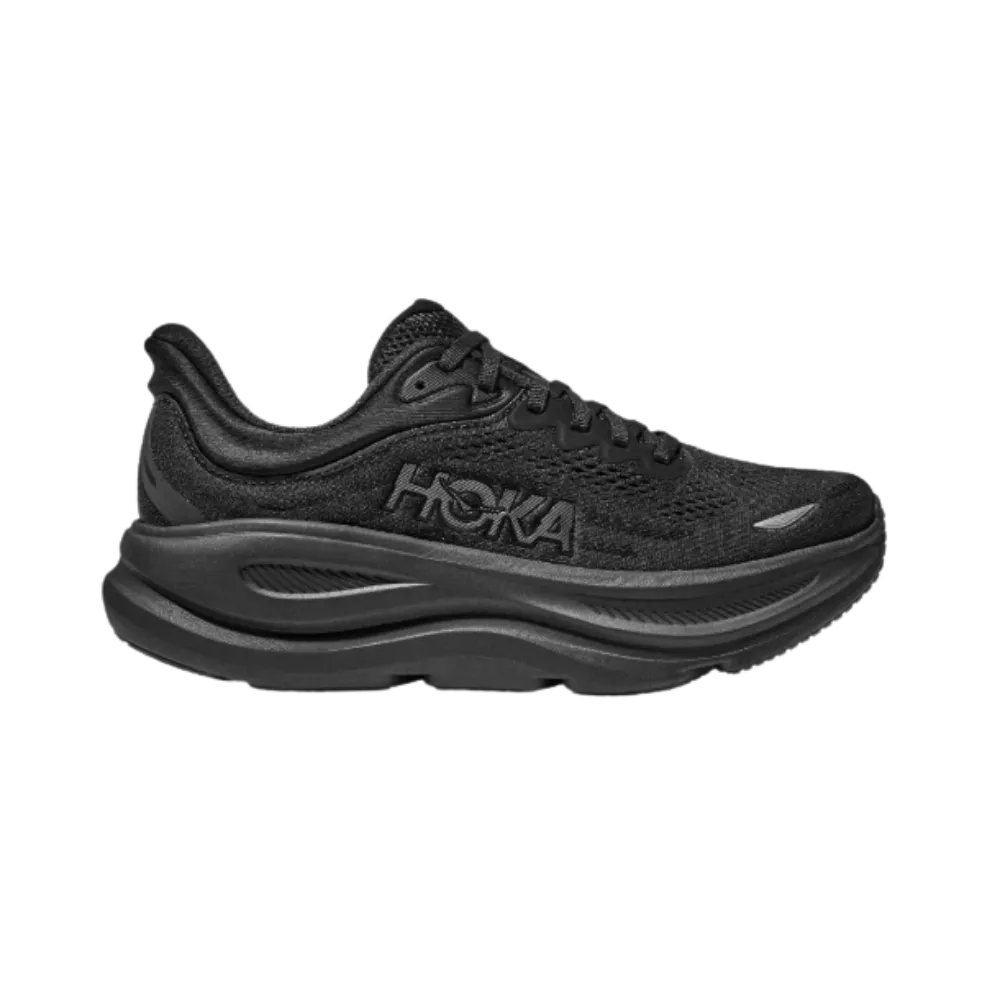 The Bondi 9 showcases a meticulously engineered construction, featuring a structured knit upper designed for optimal breathability. The upper incorporates engineered mesh composed of 55% recycled polyester, promoting both sustainability and performance. Key elements include a 3D molded collar, a padded tongue and heel collar, and a durable Durabrasion rubber outsole.
