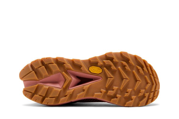 The upper is meticulously crafted from a one-piece engineered knit, incorporating breathable engineered air mesh with strategic overlays. The materials list includes recycled content in the vamp and quarter jacquard mesh, alongside a 50% soybean-based sockliner and recycled polyester components. A Vibram® XS Trek rubber outsole ensures grip across varied terrains.