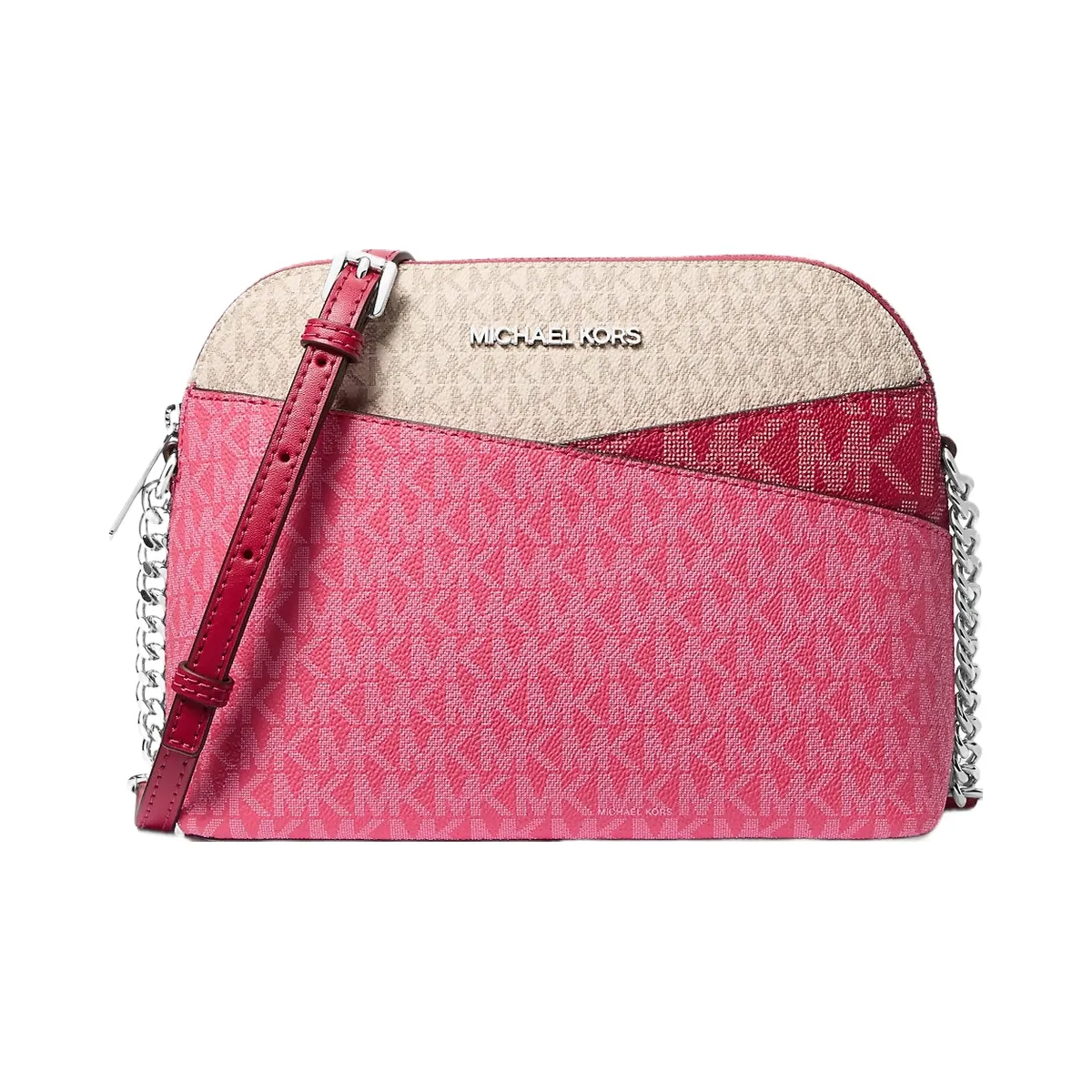 Michael Kors Jet Set Travel Color-Block Signature Logo Crossbody Bag Dark Raspberry Multi