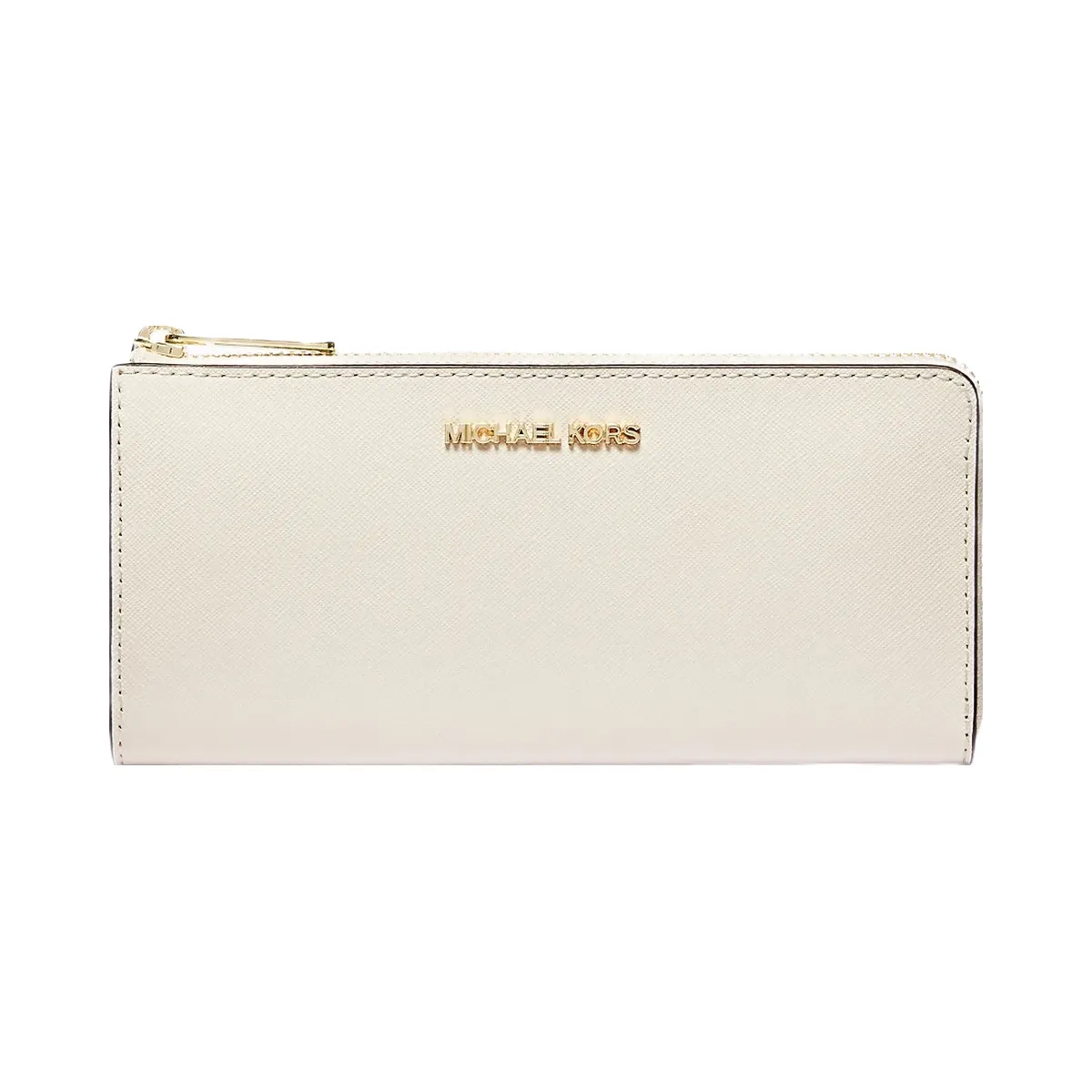 Michael Kors Jet Set Travel Large Saffiano Leather Quarter-Zip Wallet Lt Cream