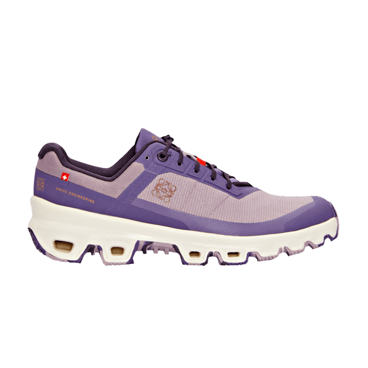 The Cloudventure 'Purple' boasts a meticulously engineered two-ply mesh upper, composed of recycled polyester, and reinforced with a windproof membrane and recycled-canvas elements. The construction incorporates signature elements such as the Loewe x On marble design Missiongrip™ outsole and design elements inspired by Japanese craftsmanship. Further enhancing its design, the shoe features taped construction, a CloudTec® sole, a Speedboard® midsole, hand-pressed marbled outsoles, and the Loewe's anagram on tongue and quarter panels.