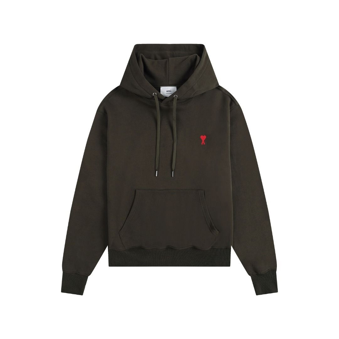 This garment, a dark green hoodie, originates from the Parisian fashion house AMI Paris. The brand, recognized for its contemporary and accessible approach to luxury, has established itself as a purveyor of refined casual wear. The hoodie represents a key piece in AMI's collections, embodying a blend of Parisian chic and relaxed streetwear sensibilities, with an unmistakable emphasis on quality and understated elegance.