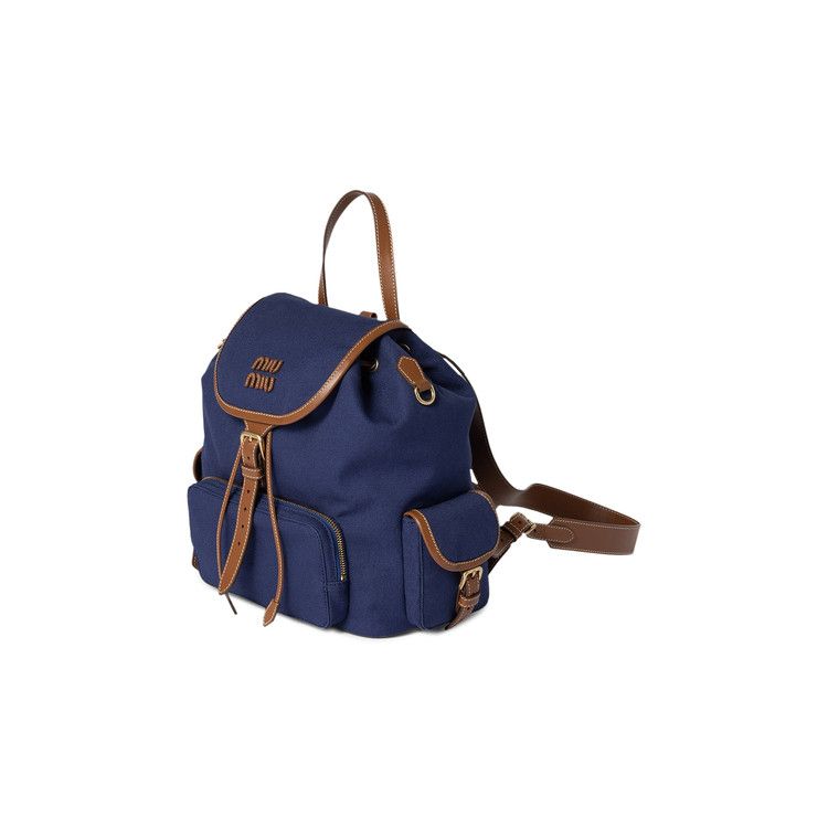 Miu Miu Canvas Backpack Cornflower Blue/Brandy – lateral view