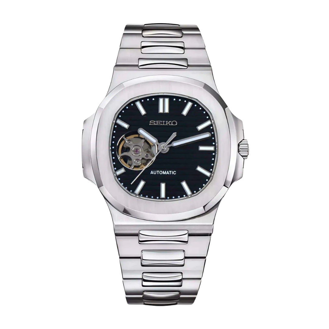 The Nautiko Black Open Heart emerges from a lineage of custom-built timepieces, a 'Seiko Mod' that utilizes the reliable Seiko NH38 automatic movement. Its design inspiration directly references the iconic Patek Philippe Nautilus, embodying a blend of accessible quality and aspirational aesthetics. This fusion of elements solidifies its position within the landscape of horological innovation, delivering a statement of both function and form.