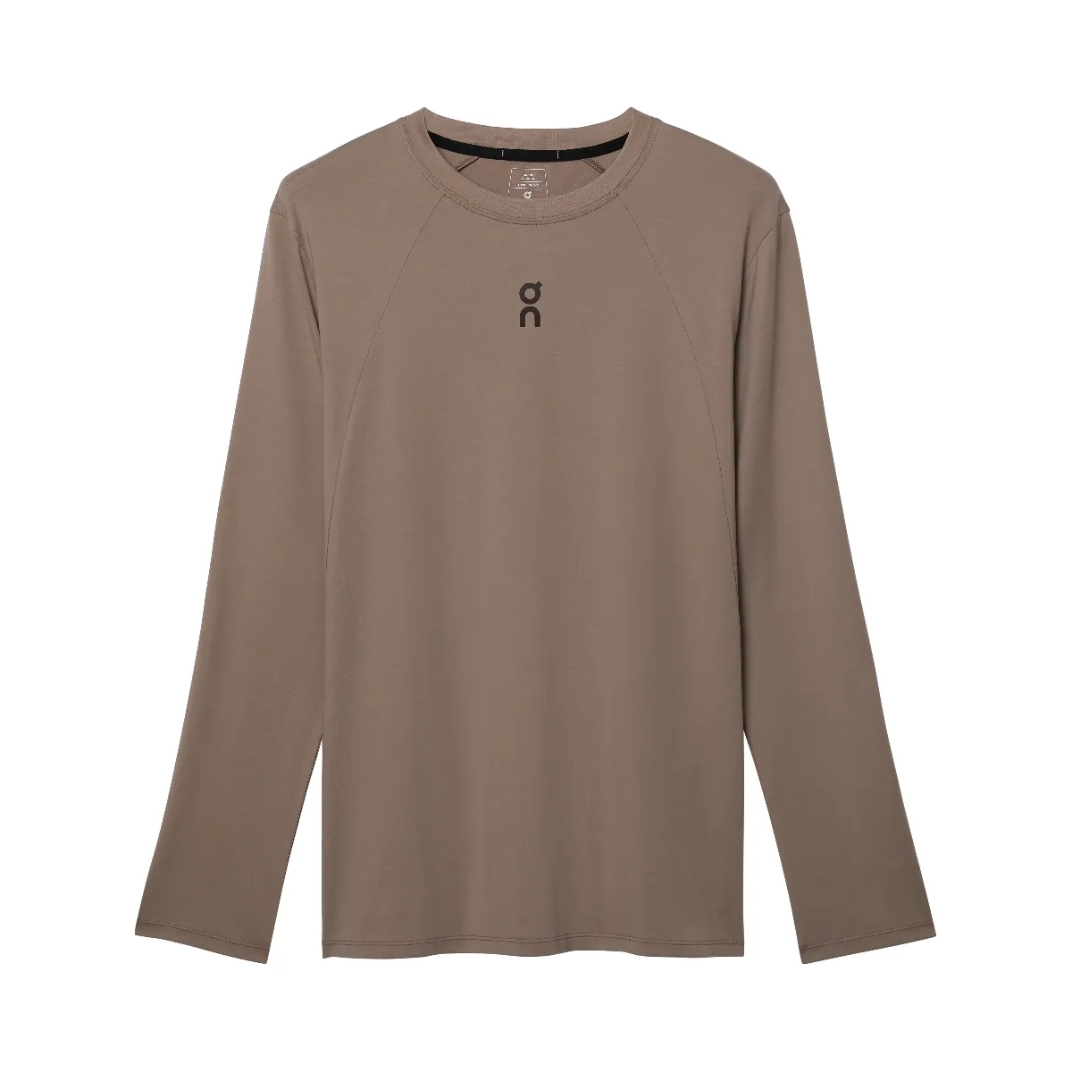 The On Trek Long-T Cinder serves as a versatile garment, ideal for both training and everyday wear. The long sleeves provide protection, while the regular fit ensures a true-to-size experience, accommodating a wide range of body types. A reflective logo, positioned at the center of the chest, adds an element of safety, especially when worn with a backpack, highlighting its suitability for outdoor activities and urban environments alike.