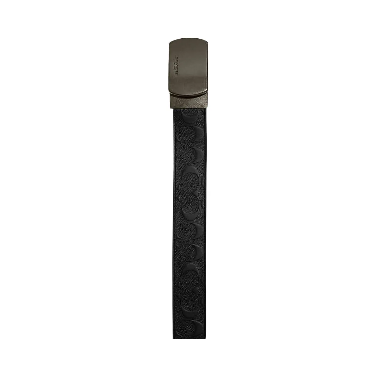 Coach Plaque Buckle Cut To Size Reversible Belt, 38 Mm Smooth Leather-Gunmetal-Black-Dark Saddle