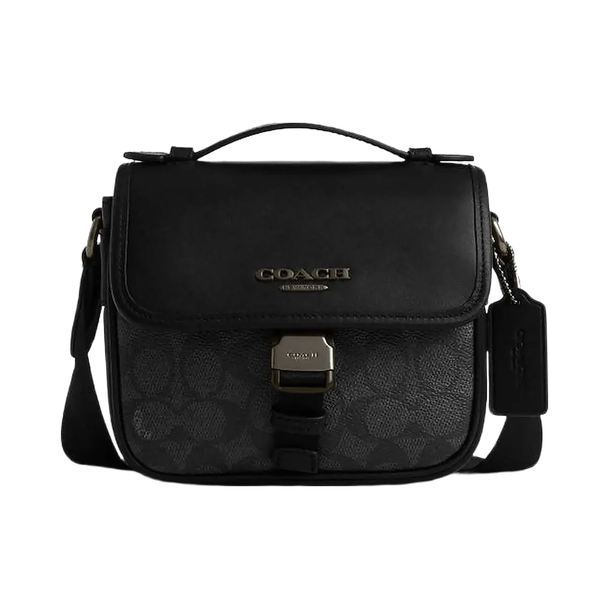 The Racer Crossbody Bag is meticulously constructed with signature coated canvas, ensuring both durability and a distinctive aesthetic. Smooth calf leather accents further enhance the bag's refined appearance and tactile experience. Gunmetal hardware and a speedclip closure contribute to its sleek, functional design, while fabric lining provides a polished interior.