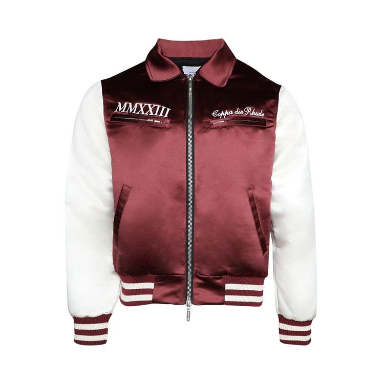 Rhude Satin Front Zip Varsity Jacket Maroon/Cream