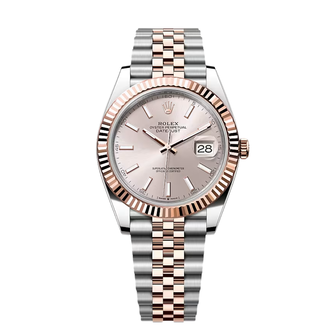 Rolex Datejust 41 Sundust Pink Index Dial Two Tone Rose Gold Fluted Bezel Jubilee Bracelet