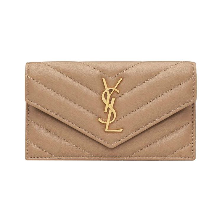 Saint Laurent Cassandre Fragments Flap Card Case In Lambskin Natural Tan