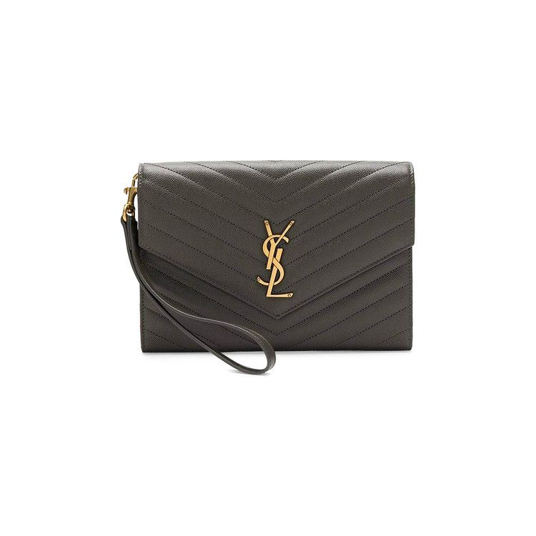 Saint Laurent Monogram Quilted Envelope Clutch Pebble