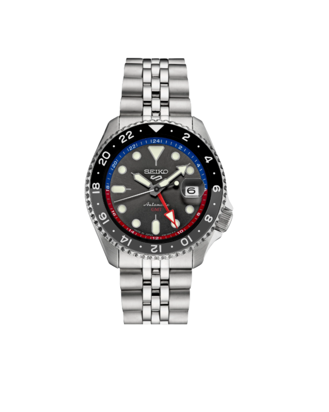 Seiko 5 Sports Skx Gmt 42.5mm Charcoal Dial Stainless Steel Men's Watch Ssk019