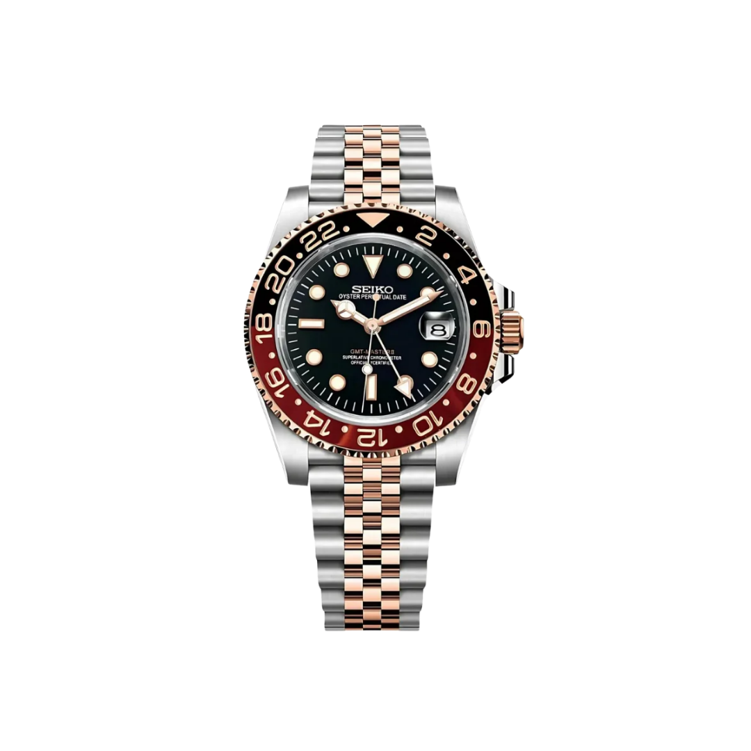 The watch boasts a robust construction, typically featuring a 904L or 316L stainless steel case, often adorned with rose gold plating, offering both durability and visual appeal. The heart of the watch is the Seiko NH34 automatic GMT mechanical movement, providing reliable timekeeping and the crucial GMT function. A scratch-resistant sapphire crystal protects the dial, sometimes enhanced with an anti-reflective coating and a cyclops lens for date magnification; this ensures clarity and legibility under various conditions, essential for the discerning wearer. The bracelet is generally an Oyster or Jubilee style, often two-tone with steel and rose gold plating, secured by a secure-fit, double-locking clasp with glide-lock functionality, emphasizing both security and ease of adjustment for a perfect fit.
