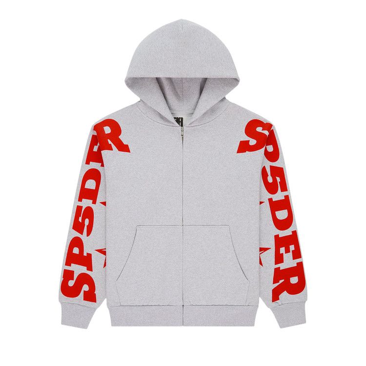 Sp5der Mx555 Zip Hoodie 'heather Grey' – front view