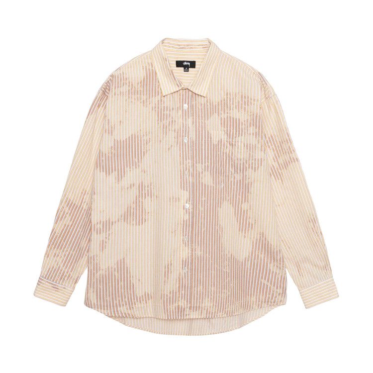 Stussy Bleached Poplin Classic Long-Sleeve Shirt Tan – front view