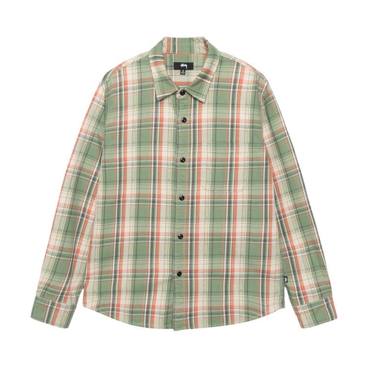 Stussy Dan Washed Cotton Plaid Shirt Green – front view