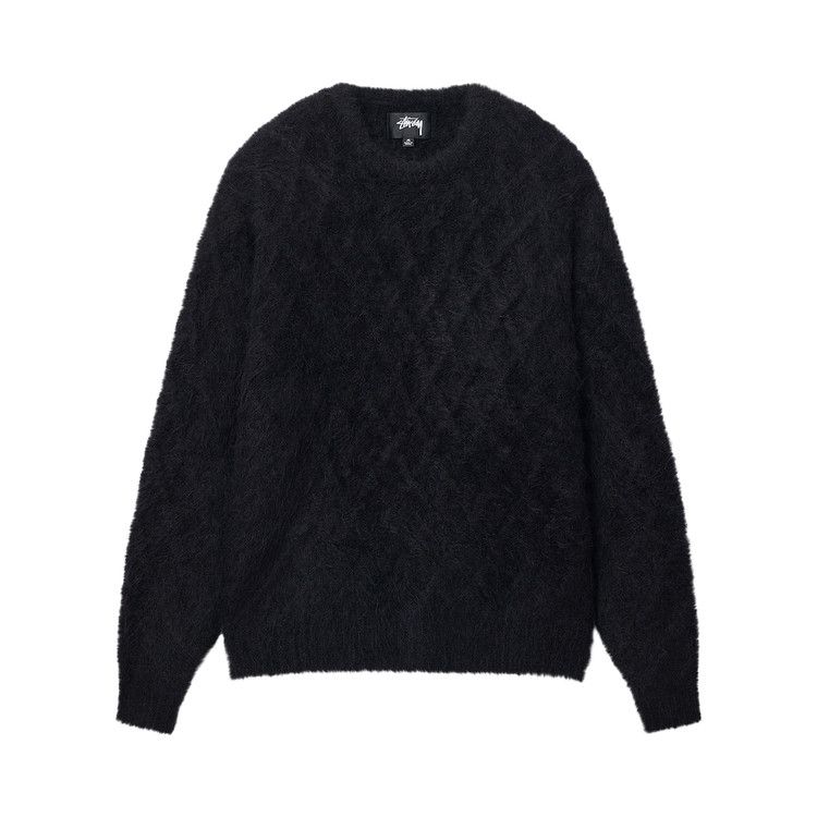 Stussy Fuzzy Lattice Crew Sweater Black – front view