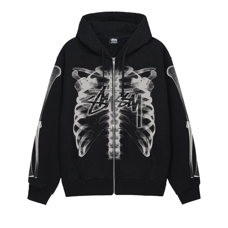 Stussy Rib Cage Zip Hoodie Black/White – front view