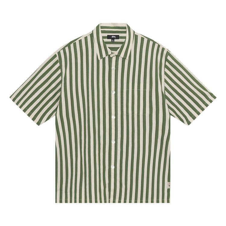 Stussy Striped Boxy Flat Hem Shirt Green – front view