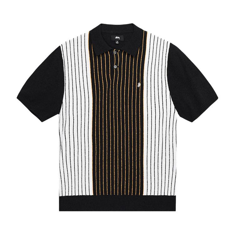 Stussy Textured Shorts-Sleeve Polo Sweater Black Stripe – front view