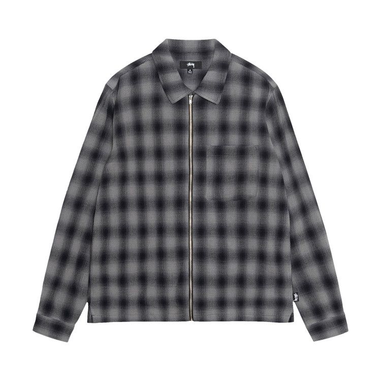 Stussy Zip Twisted Yarn Plaid Shirt 'charcoal'