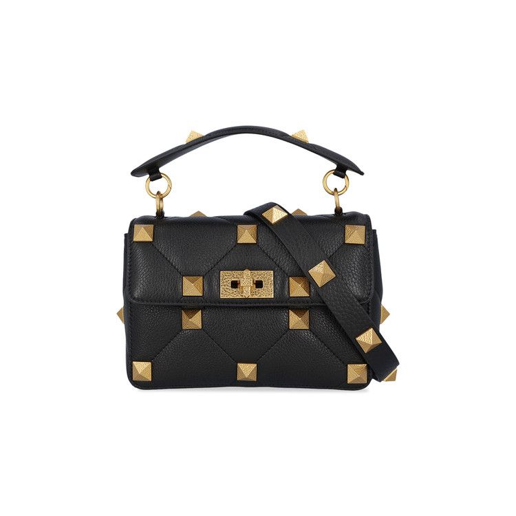 Valentino Medium Roman Stud Shoulder Bag Black