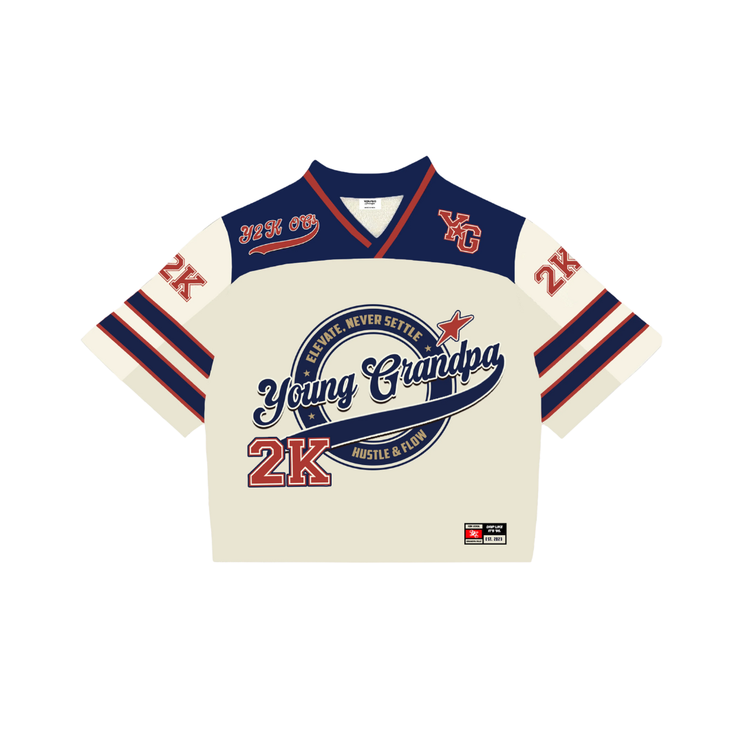 The Young Grandpa Y2K Hustle Rugby Jersey emerges from the digital ether, a product of the early 21st-century aesthetic. This garment is a direct descendant of the brand's vision, representing a bold statement in contemporary fashion. Its lineage is traceable to the brand's core ethos, blending nostalgia with modern design.